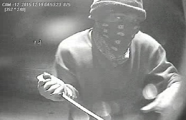 Officers responded to a call at Texell Federal Credit Union on Monday, December 19, 2015, just after 10:00 am, in reference to an ATM that was damaged. During the course of the investigation detectives were able to obtain security video footage that shows two males approach the ATM. One of the males acted as the “lookout” while the other male attempted to gain access into the ATM with a pry bar. The suspects were unable to get the ATM open however they did cause a significant amount of damage leaving the ATM inoperable.