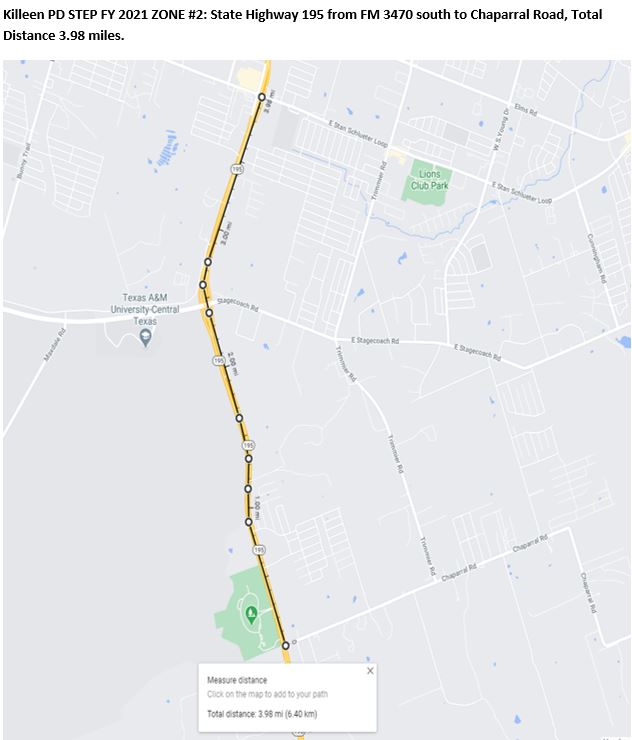 • State Highway 195 from FM 3470 (Stan Schlueter Loop) south to Chaparral Road, 3.98 miles.