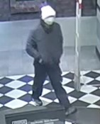 The suspect is described as a medium build white male and was last seen wearing a white beanie, a white mask and gloves, and dark color clothing.