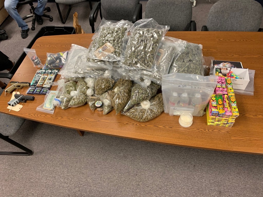 Detectives also recovered 14,600 grams (32 pounds) of marijuana, 176 grams (6.2 ounces) of THC vape oil, 1,566 grams (3.45 pounds) of cocaine, 28 grams (1 ounce) THC wax, 8 mushroom bars, and $8,187.00 cash.