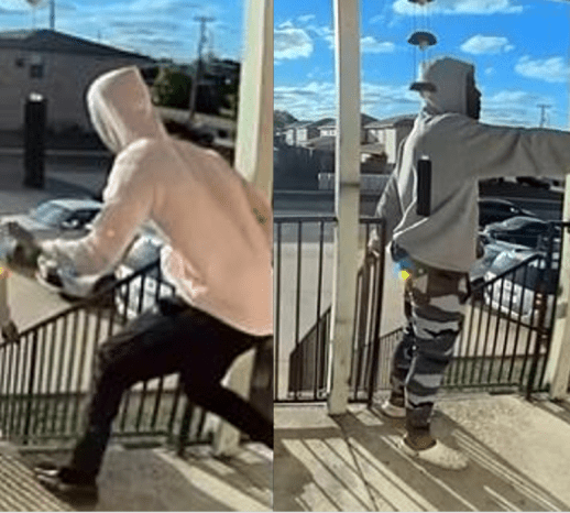 Suspect 2: B/M, slender build, wearing black sweatpants, light colored (white or pink) hooded sweatshirt, black shoes.
