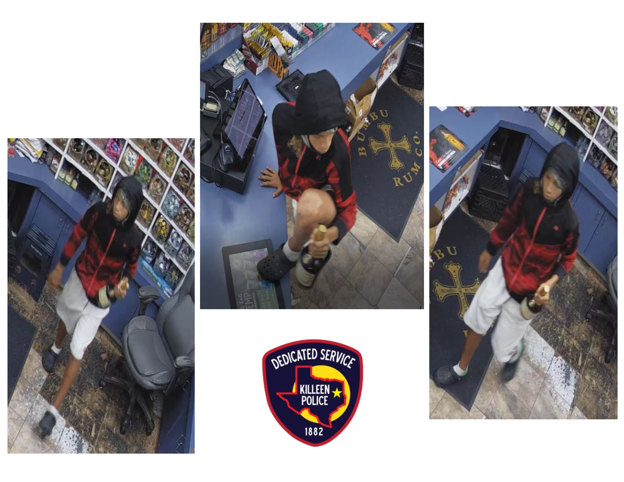 Officers were then dispatched to the Killeen Wine & Spirits located at 1015 N. College in reference to a burglary. Video surveillance showed at approximately 5:29 a.m., the same vehicle is seen backing up again to the business and two black males exit the Jeep. The males used a metal bar to enter the business and took liquor and cash from the cash register.